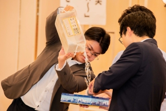 また、世界に残存するとされる1万2千発超の核兵器を「音」で体験してもらおうと、1万2千個のBB弾が落ちる音を、マイクを通し会場に響かせた。参加者からは「世界にどれだけ核兵器があるか数字では学んでいたが、音で聞いてみるといかに恐ろしいことかということが身にしみた。」との声が聞かれた。最後に高橋さんは、「被爆者の記憶だけでなく、被爆者と出会った記憶を伝えたい。それを通して、平和を作る人を育てることが私の使命。」と語った。